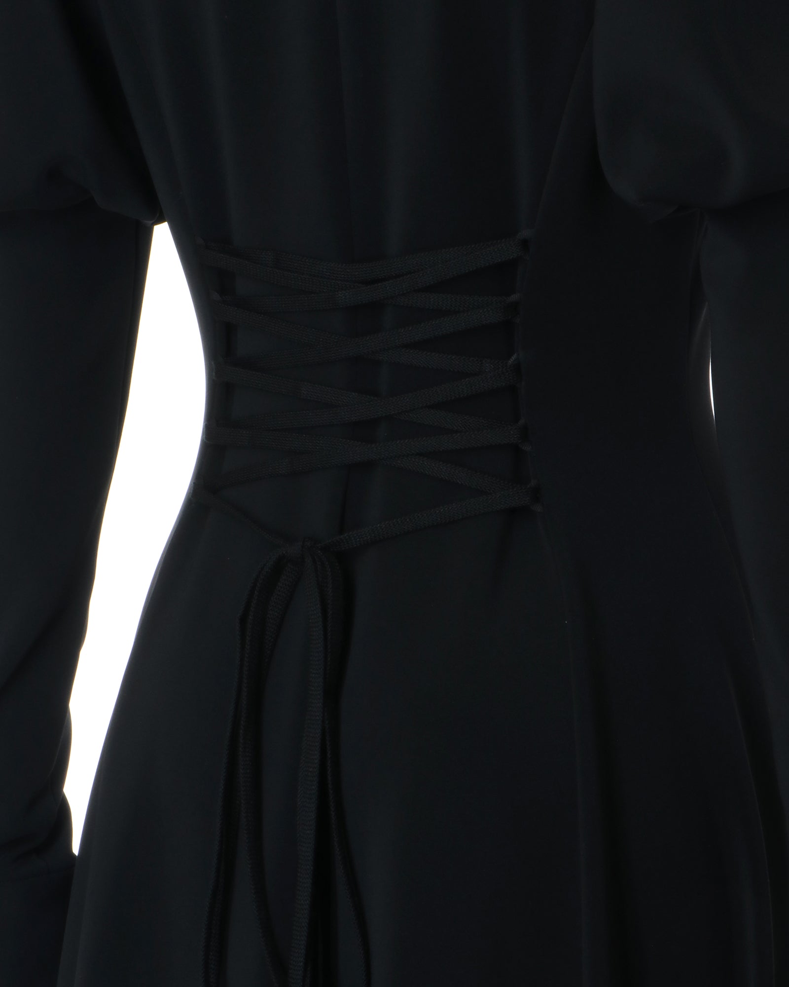 ウエストはバックレースアップ仕様のループ付きでしっかりウエストを絞れます。