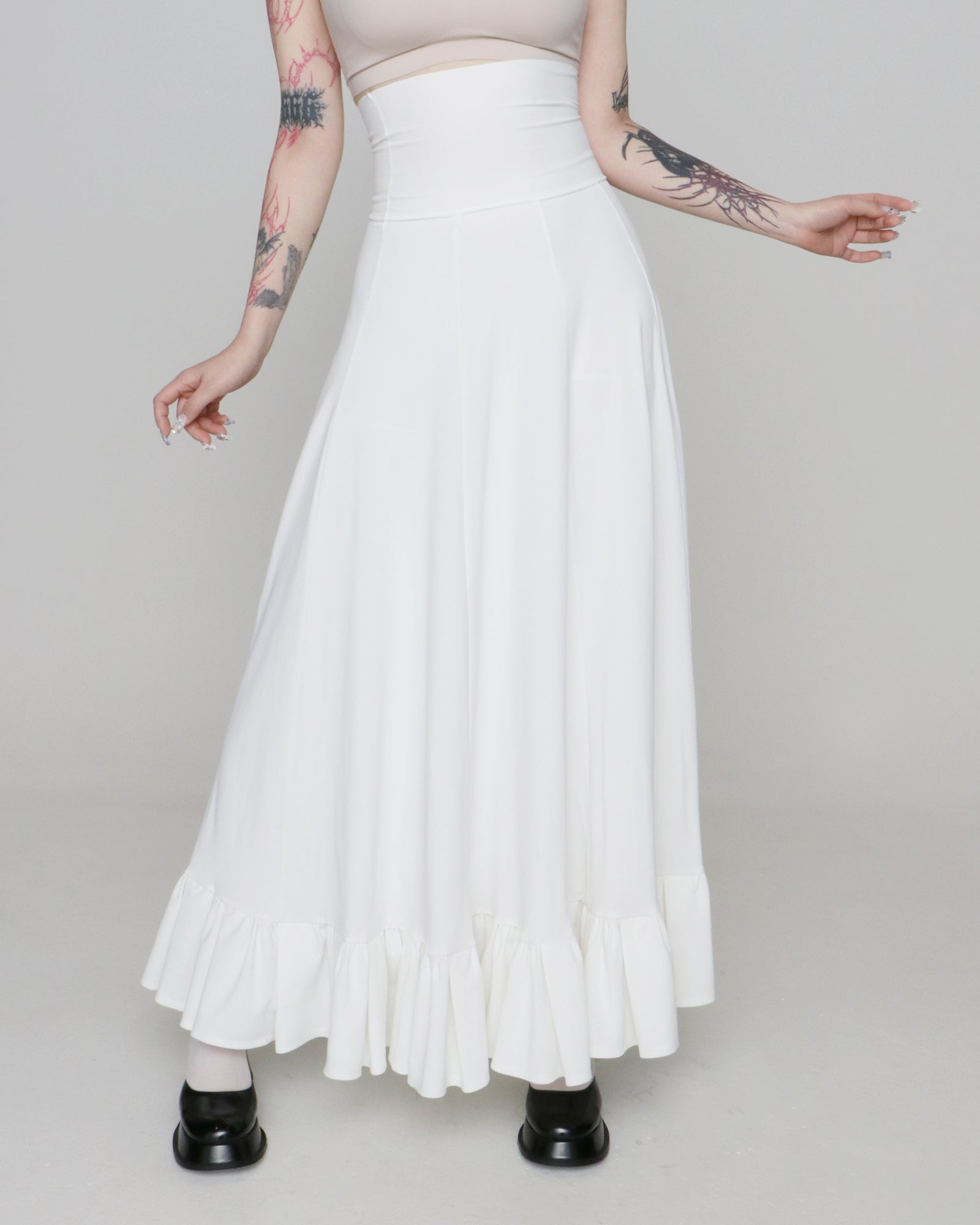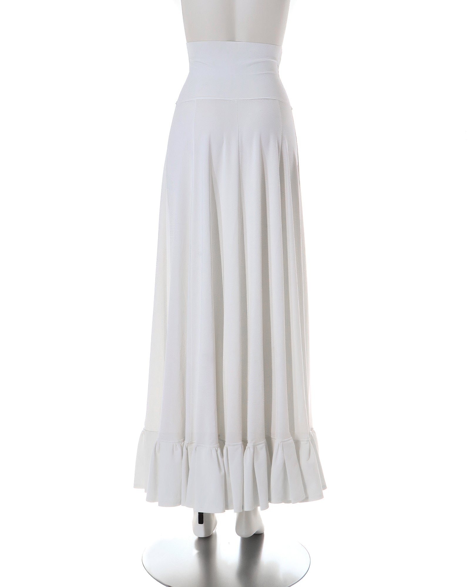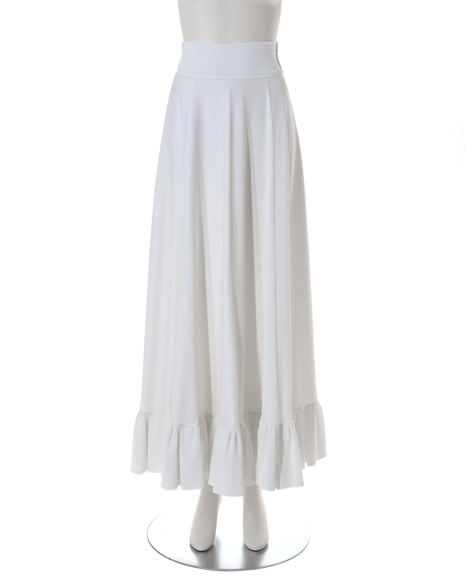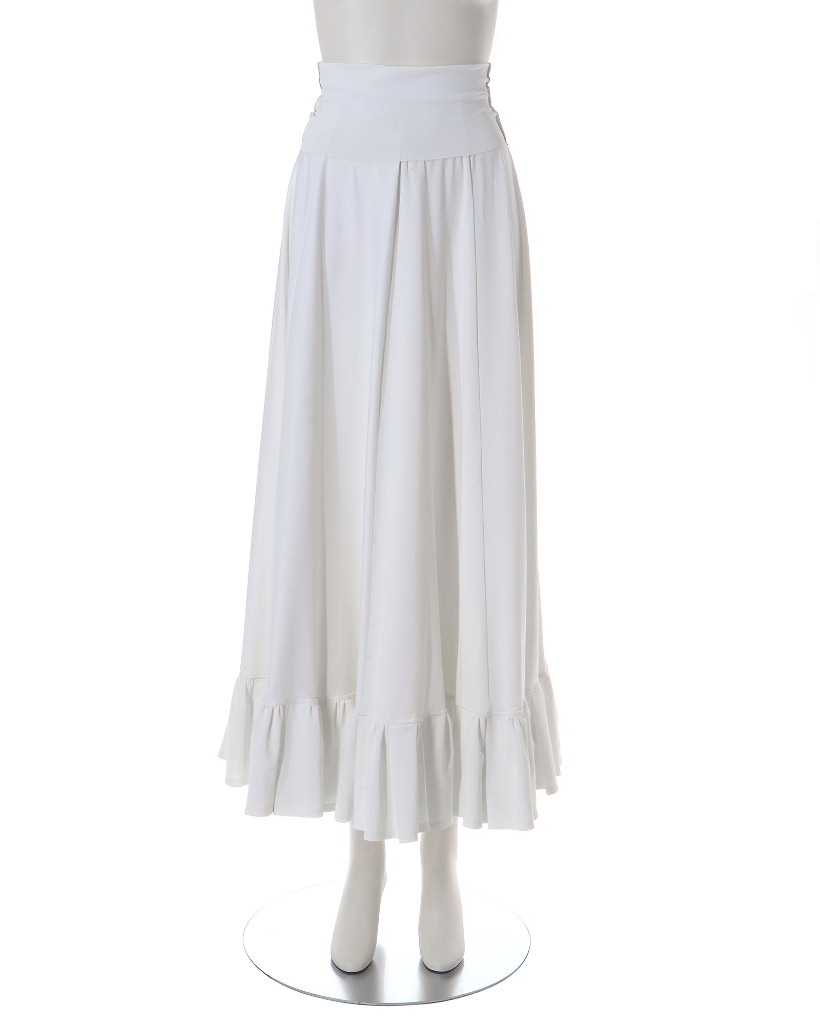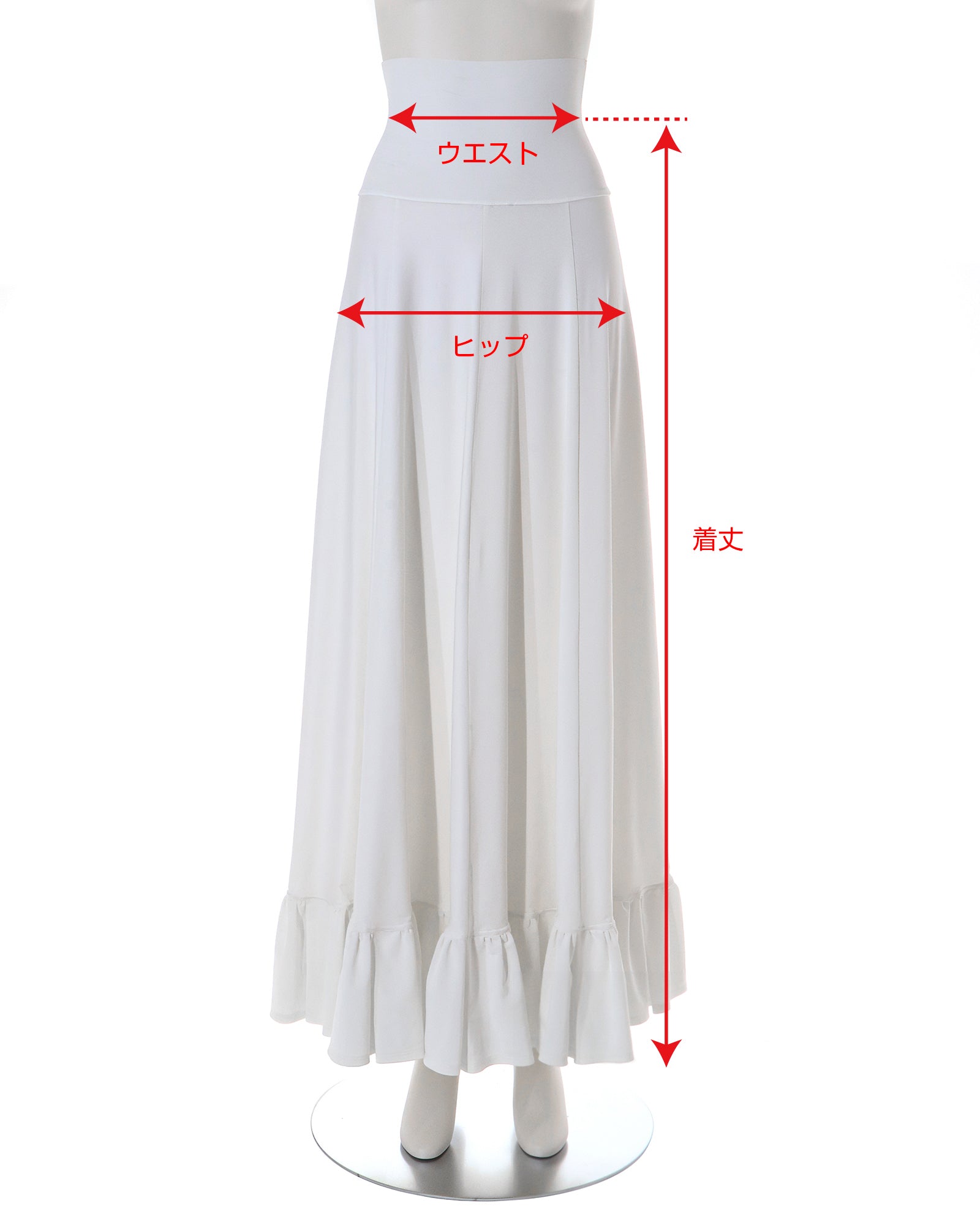 ウエスト位置より裾まで1m長のマキシ丈ペチコート。裾にはフリルが付いていて、ロングワンピースなどの裾下からのぞかせることができます。